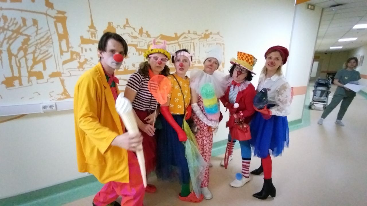 15 волонтеров в команде действующих медицинских клоунов и сказочниц - людей разных профессий (психологи, предприниматели, актеры, медсестры, педагоги, бухгалтеры, фрилансеры и т. д.), которых объединяет идея наполнить жизнь детей и их родителей в больницах смехом, игрой, интересом, дружбой, цветом и светом.
